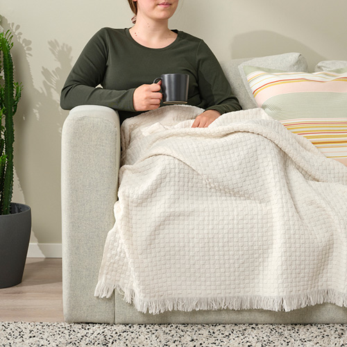 無需大費周章,也能令家居感覺煥然一新。KLOTSTARR輕便暖氈配上質感立體的凹凸格紋和玩味流蘇飾邊,與同款咕臣套完美相襯,為家中任何角落增添新意。