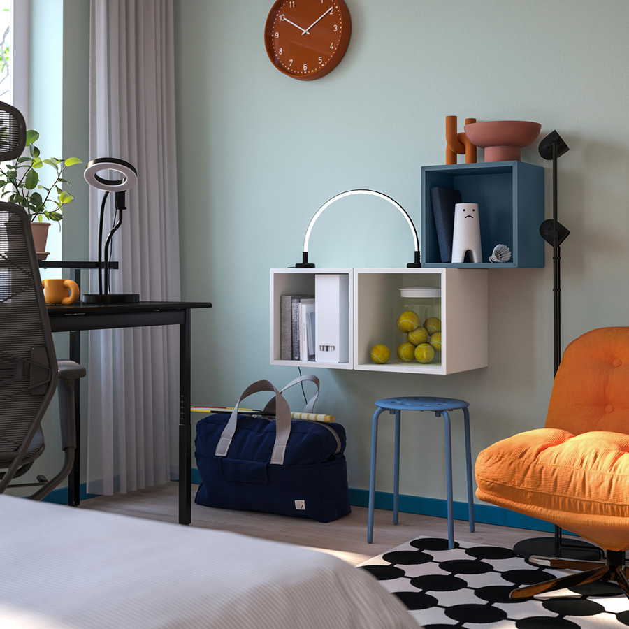 如何令空間變得更加整齊?秘訣就是封密式儲物。為EKET 儲物櫃加上櫃門,便能隱藏雜亂物品,令儲物空間看起來更加整潔。你也可以配搭開放式儲物櫃,展示珍藏同時收納物品,加倍實用。