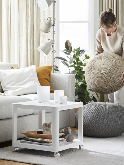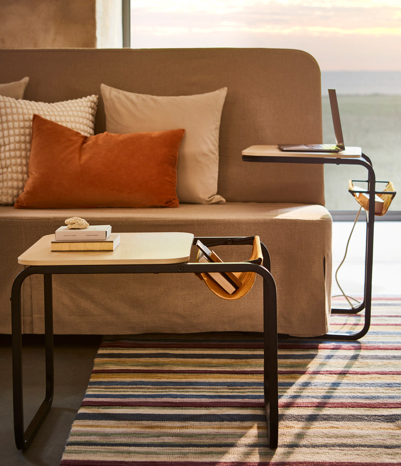 各式各樣的儲物几、長几和角几都配有儲物籃或貯物格,方便儲存輕便暖氈、靠枕和報紙。有些附有活輪和托盤,方便移動。有些配有活動摺板,可按需要調整檯面大小。