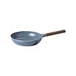 設計時尚的平底鑊,灰藍色鑄鋁合金製造,兩個出水口和濾網,溶膠凝膠不黏塗層配木製把手。 適合任何菜式,可以直接上桌奉客