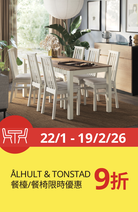 ÅLHULT 餐椅結合實心松木框架和可拆卸機洗的凳套,高角度的堅實凳背與軟墊,提供舒適、無憂的用餐體驗。