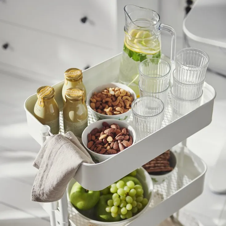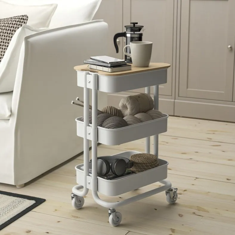 適合小空間使用的活動几,可移動到需要額外貯物空間的地方,整齊放置廚具、文具用品、鑰匙和充電器。 可鎖定的活輪,讓活動几固定不移位