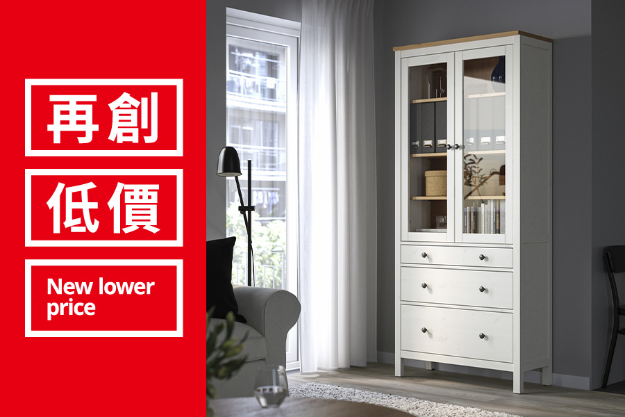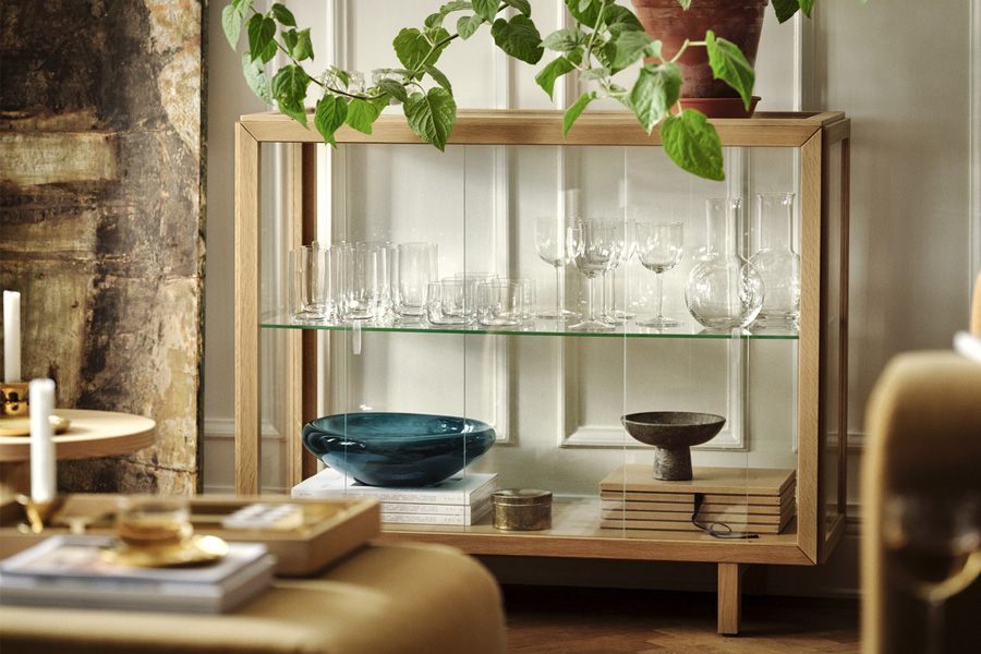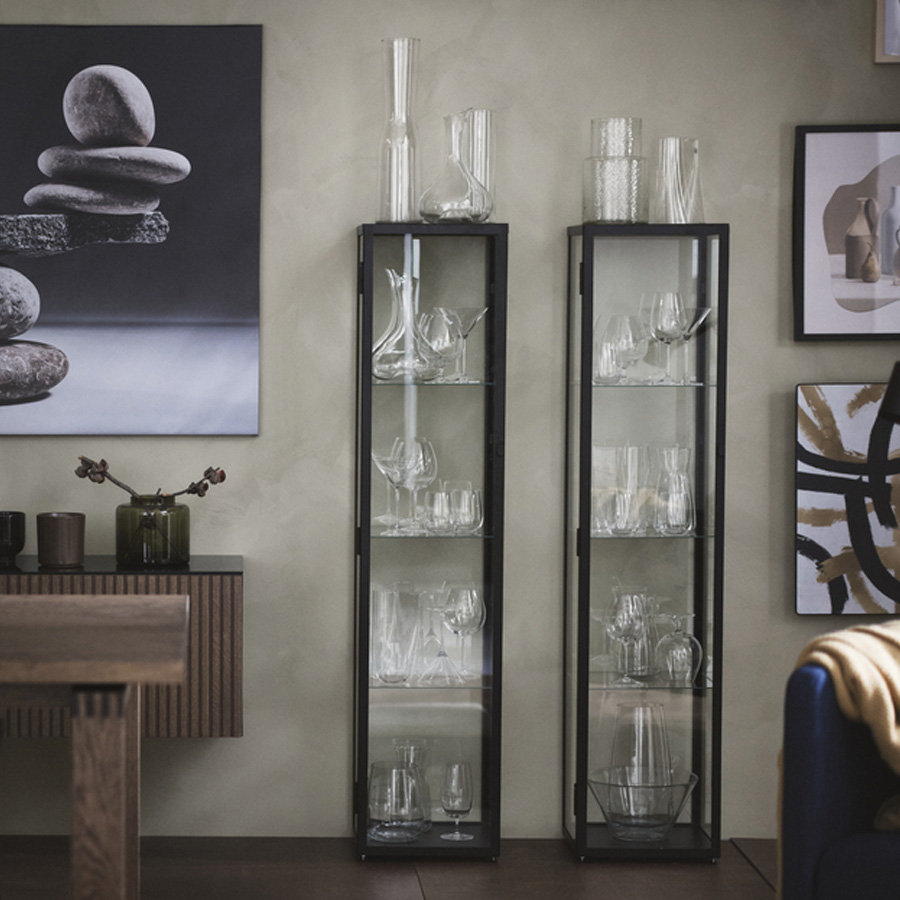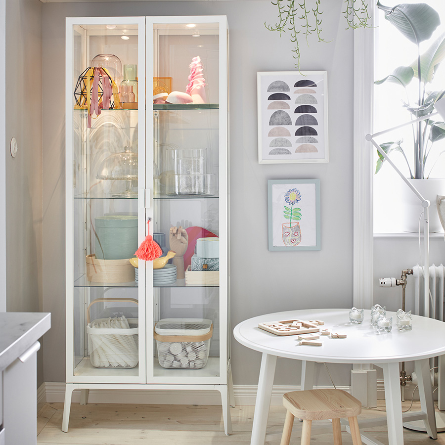 IKEA的陳列櫃提供不同尺寸和風格選擇,多款設計更能輕鬆加入內置燈具,不但能襯托櫃內物品,更可以營造合適的氣氛。