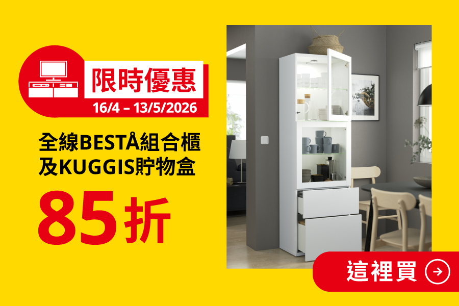 IKEA的陳列櫃提供不同尺寸和風格選擇,多款設計更能輕鬆加入內置燈具,不但能襯托櫃內物品,更可以營造合適的氣氛。