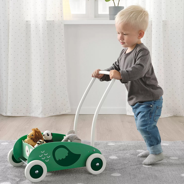 小朋友可以把自己喜歡的東西放到學行車上,然後推著四處去