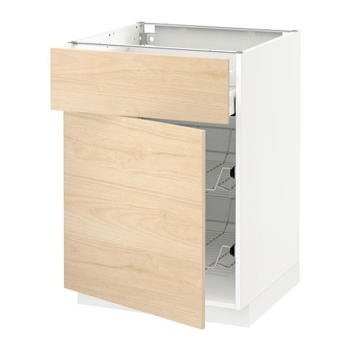 地櫃連鋼條籃/抽屜/門, 白色/Askersund 淺梣木紋, 60x60x80 厘米