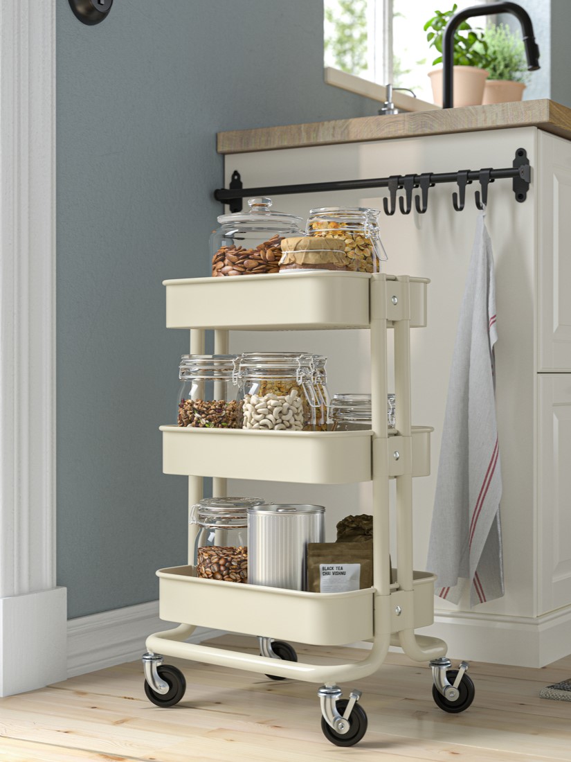 活動几是廚房的無名英雄,這個好幫手不但提供額外儲物空間,更附有活輪,方便推到任何角落。活動几萬歲!