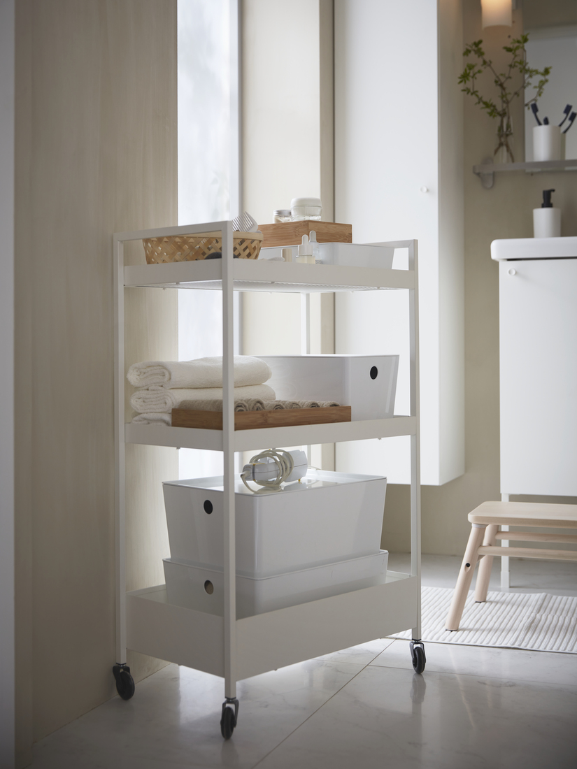 這款纖巧的NISSAFORS推車可輕鬆收納於書枱下方、客廳或廚房的各種夾縫空間,在不佔用額外地方的情況下,為您增添實用的儲物空間。通花設計方便看清物品,而且經過嚴格測試,確保穩固耐用、安全可靠。