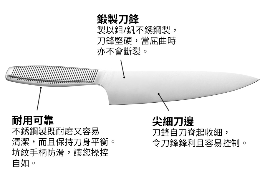 • 以耐磨不銹鋼製造,是入廚刀具的不二之選。
