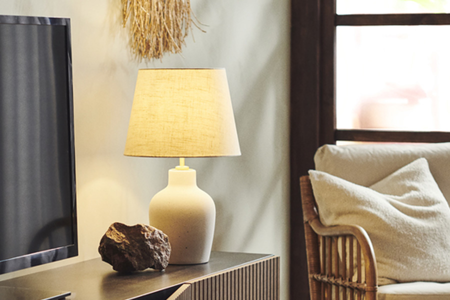 採用穩固的陶瓷燈座、黃銅色燈頭,以及帶有紋理纖維的燈罩,這款座檯燈整體設計經典,易於配搭各種家居風格,適合擺放於家中任何空間。