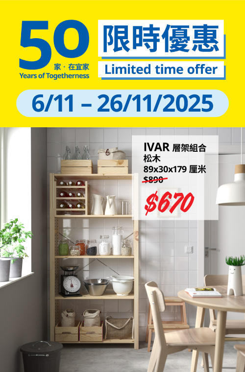 寬敞的OMAR儲物系列提供充裕的儲物空間,適合擺放大大小小的物件。如果需要收納較細的物品,您可配合夾式網籃和層板蓋使用。