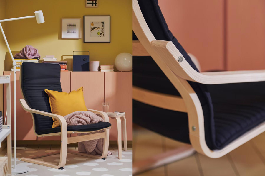 POÄNG扶手椅的風格經典,更可更換椅墊和椅墊套,自然令人愛不釋手。扶手椅採用具彈性的時尚曲木椅框和具承托力的高椅背,非常舒服。