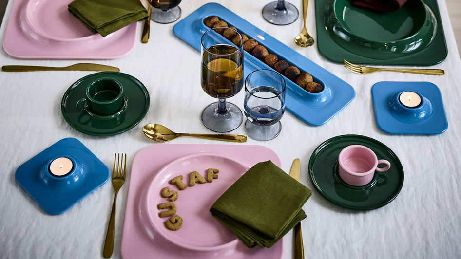 經典的聖誕節顏色,配上格子圖案。設計師Evelina Kroon將濃烈的截日氣氛帶到餐檯, 讓您輕鬆搭配VINTERFINT系列的其他產品或家中已有的物品