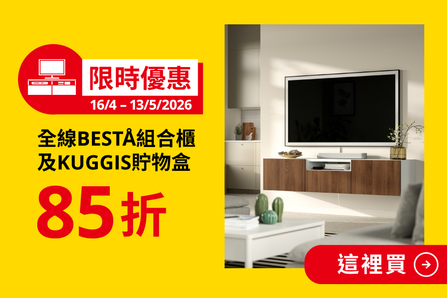BESTÅ 組合電視櫃可以讓你隨意選擇配搭櫃門或抽屜的款式,打造符合你需求的電視櫃和壁櫃組合!