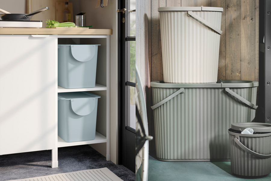 HÅLLBAR 垃圾桶可堆疊,節省空間。可隨意將垃圾桶放置於家中任何地方,或集成於櫥櫃或抽屜中。