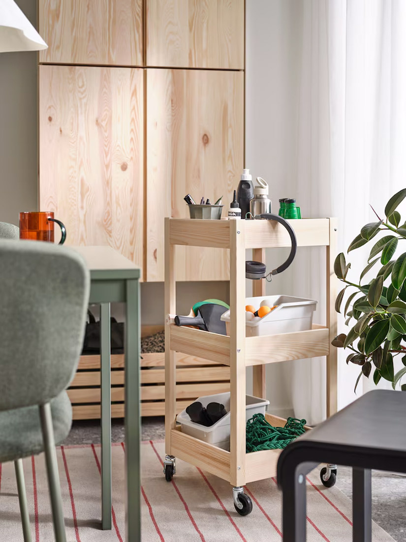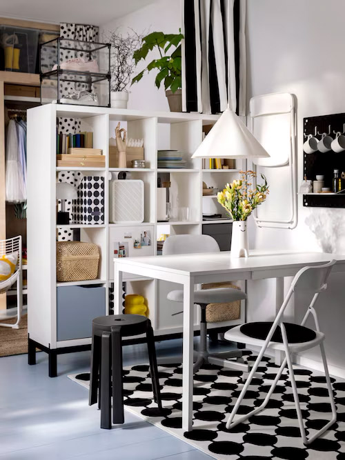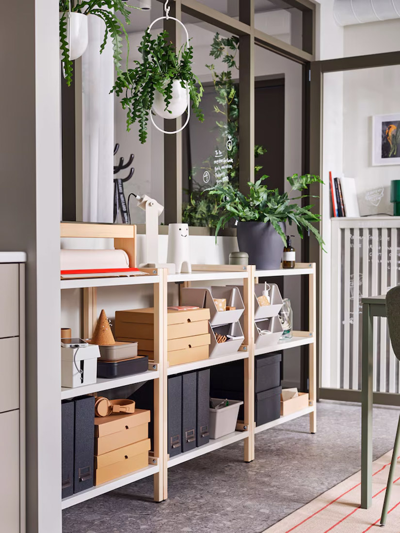 需要收納大量物品?你需要好好利用每吋空間,例如利用開放式層架將窗戶下方的空間變成方便的儲物區,而高及天花板的儲物櫃也能提供大量儲物空間,關上門便能保持整潔,儲物櫃下方更可以擺放附設活輪的儲物箱。