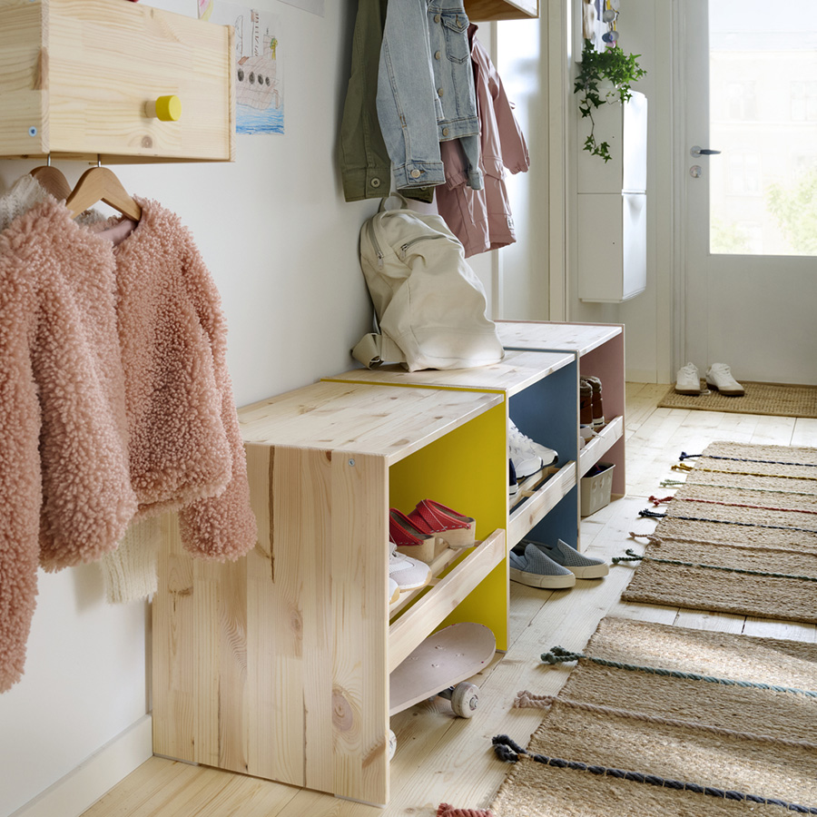 客人再多也不用在玄關堆滿衣物。PINNIG衣帽架雖然體積小巧,卻功能強大,最適合放在玄關。衣帽架能提供足夠的空間掛放你和客人的外套、帽子、包袋、頭盔、圍巾和鞋,而不同高度的掛鈎則方便不同年齡的客人取放物品。