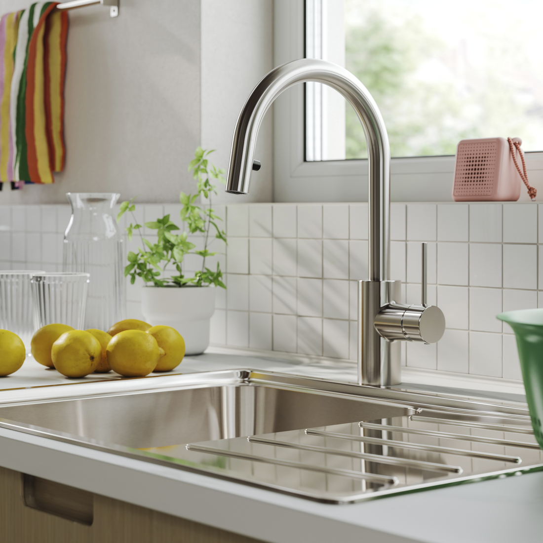 廚房水龍頭能靈活移動,使用起來更得心應手。無論是處理鍋具、準備食材,還是飯後清洗碗碟,靈活方便的設計都能讓你事半功倍。IKEA多款水龍頭均配備拉出式或拉下式功能,可延伸使用,部分傳統款式的設計更內藏拉出式軟管,又或配備可靈活移動的彈簧噴頭,方便輕鬆操控。所有廚房水龍頭均可最少120度旋轉,部分甚至可360度旋轉,配合不同需要。