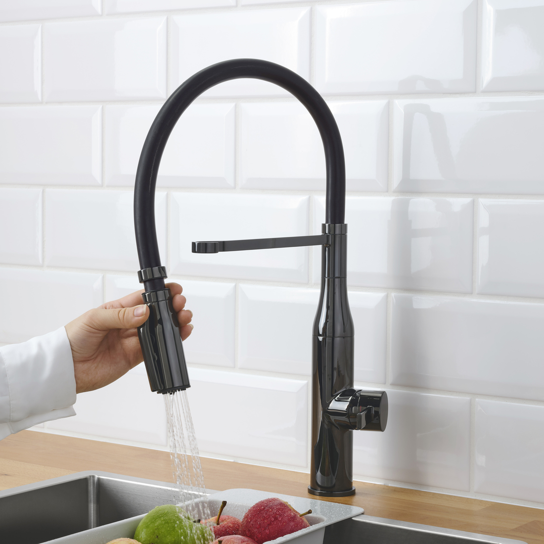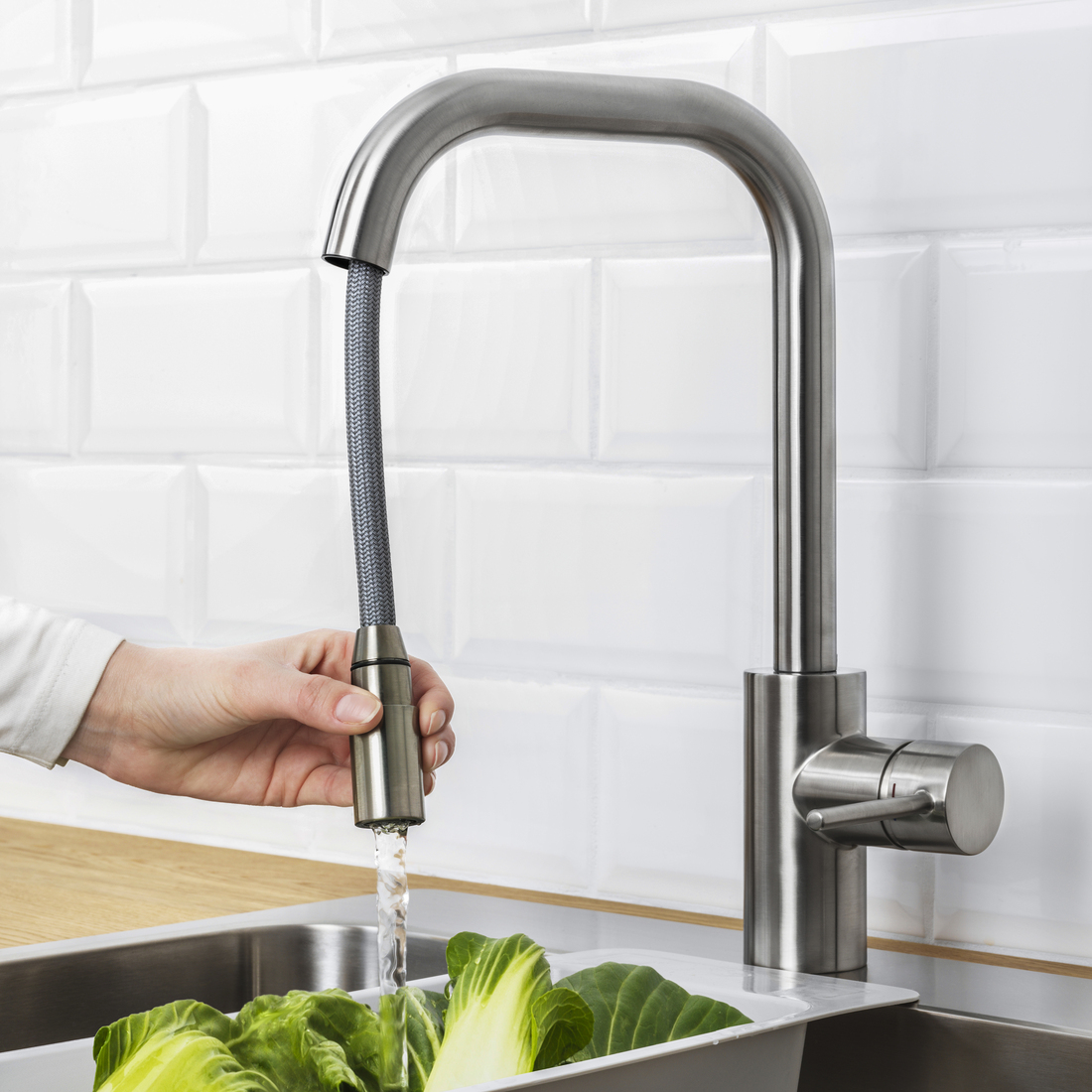 廚房的裝備應該能夠應付簡單沖洗以至深層清潔等各種工作,因此部分IKEA的水龍頭提供不同噴灑模式選擇,柔和的加氣水流適合輕柔沖洗,強力的噴灑模式則適合徹底清洗或沖洗碗碟。多款噴頭也配備360度的球形接頭,方便調整水流角度和方向。
