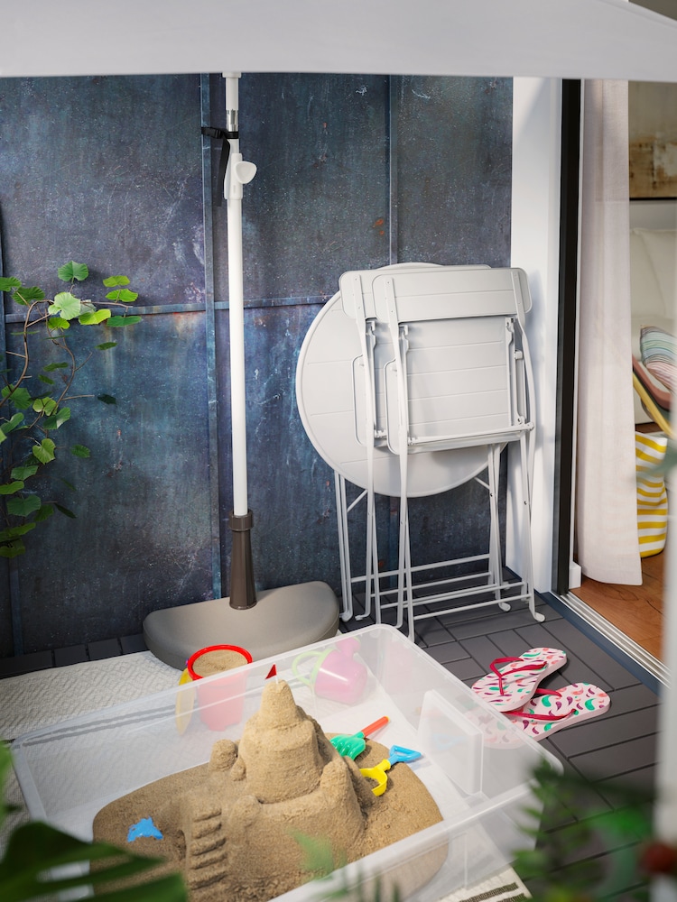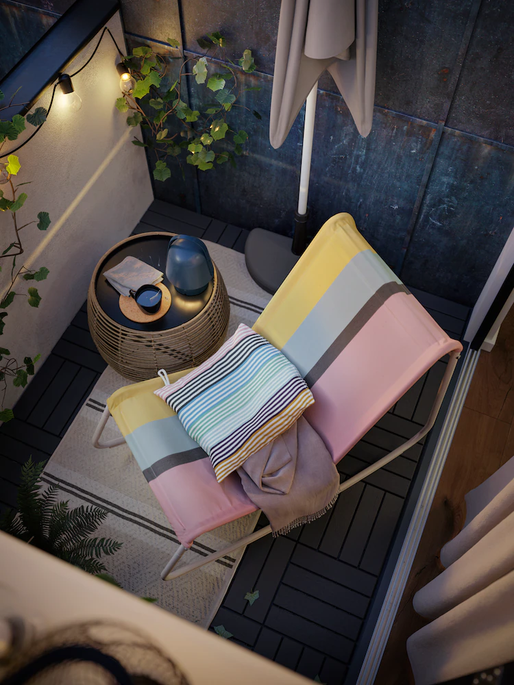 小小茶几方便又實用,當你在露台休息時可以擺放飲品和其他物品。檯面下的空間也能擺放雜物。在小空間裡,即使最細小的額外儲物空間也非常實用。