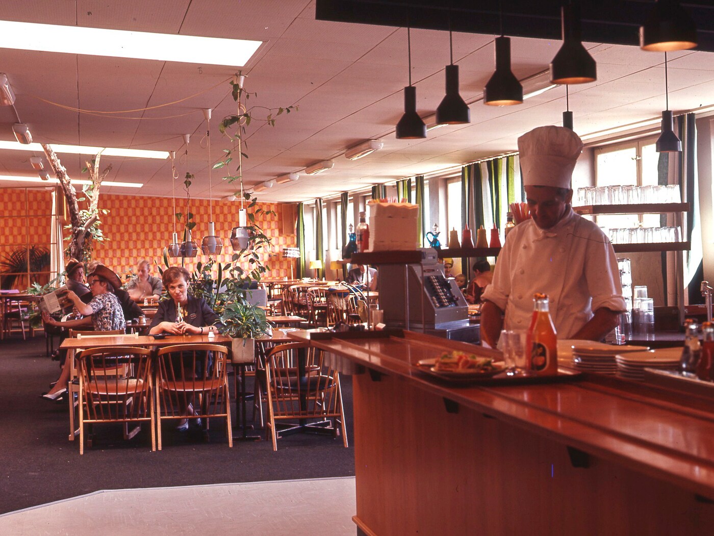 於1960年6月,IKEA門市只供應咖啡和冷盤,但在該年年底,IKEA的餐廳已設有設備齊全的廚房,包括當時屬於新發明的微波爐,因此能供應各款熱食,例如漢堡包和各款單點食品。這個轉變源自坎普拉的細微觀察,他留意到顧客會在午餐時間離開門市,到阿姆胡特的餐廳或街頭攤檔用膳,影響了整個購物過程。他意識到當顧客肚餓時,購買意欲便會下降。